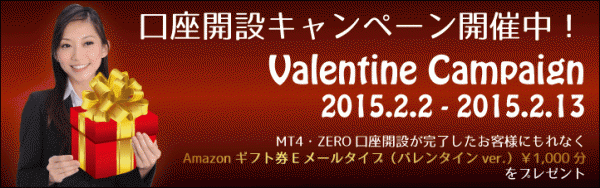 期間中にMT4・ZERO口座開設が完了したお客様にもれなくAmazonギフト券Eメールタイプ(バレンタインver.)¥1,000分をプレゼントします。