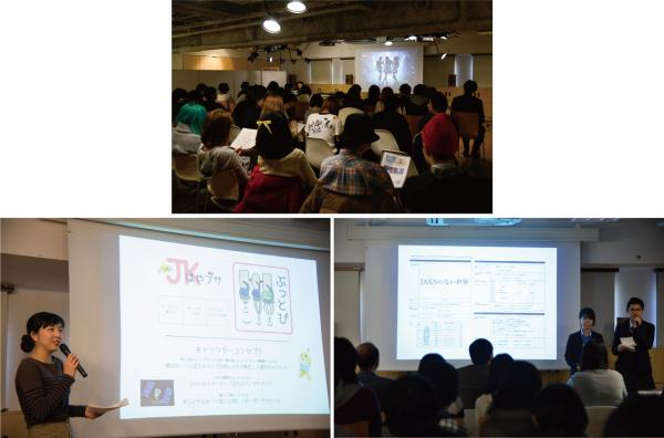 選出されたチームは、2015年1月23日(金)にJAXA 広報部長の上垣内茂樹氏と広報部 副グループ長の黒川怜樹氏、プロジェクトの成功のために参画いただいた特別講師でプロデューサーの外所一石氏、バンタンデザイン研究所の講師でスタイリストの尾崎智子女史が出席した最終審査会でプレゼンテーションを行いました。