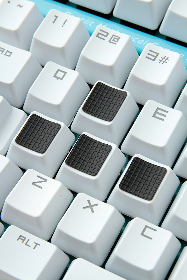 グリップステッカーカラーもブラックとスケルトンがあり好みによって選択可能、スケルトンはキートップの配列文字もすけるので、通常の使用の際にも便利。