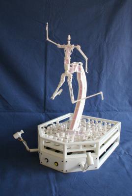 昨年7月にスピーシーズ株式会社は、スリムでキュートなフィギュアーを、静かに且つ滑らかに動かす独自の技術(Motion Figure System) を開発し、”モーションフィギュア試作機:MF201” として発表した。フィギュアーの各関節を国際特許(PCT)出願済みの特殊なワイヤー駆動方式で駆動し、駆動力を発生するサーボモーターや制御用のCPUはフィギュアーの下部に設けられた”からくりユニット”に収納している。