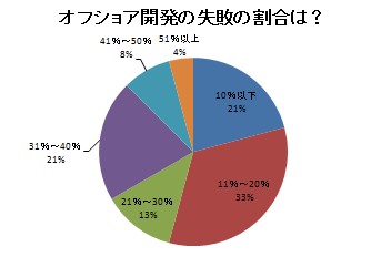 ■オフショア開発失敗の割合、過半数が20%以下に留まると回答