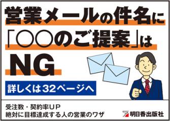 (有)明日香出版社(東京都文京区水道、代表取締役石野栄一)は、1月25日、新著『受注数・契約率UP 絶対に目標達成できる人の営業のワザ』(安部宥志著 1620円)を発売しました。