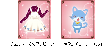 ・『ラブセン』で入手できるアイテム:チェルシーくんワンピース <条件>『ガルショ☆』で、無料ガチャを回す
