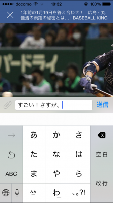 ボタン一つで簡単に、チャット画面へニュースを共有する事もできます。