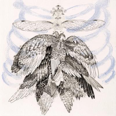 資料画像 : (C)大小島真木「始祖鳥」 / エッチング、スピットバイト、ソフトグランドエッチング、凸版 3版3色