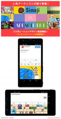 「APPARTMENT」で配信している人気アーティストが、「Simeji」専用のオリジナルデザインのキーボードとして続々登場するとともに、配信開始を記念したポイント交換(※)による無料獲得キャンペーンも実施いたします。
