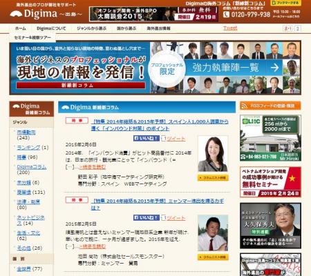 株式会社Resorz(本社:東京都目黒区、代表取締役:兒嶋 裕貴)が運営する、海外ビジネスに特化したプラットフォーム「Digima~出島~」(URL:http://www.digima-japan.com/)は、各国の海外進出支援の専門家によるコラムコーナーにて、「2014年の総括と2015年の予測」を2015年1月28日より公開いたしました。
