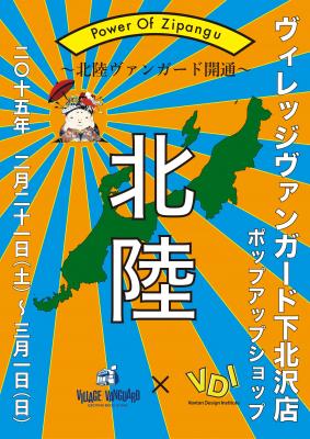 ファッション、ヘアメイク、ビューティ、グラフィックデザイン、映画、映像、フォト、ゲーム、マンガ、アニメ、パティシエ、カフェ、フードコーディネーターなどのクリエイティブ分野に特化し、即戦力人材を育成するスクール運営事業を行っているVantan(バンタン)(本部所在地:東京都渋谷区 代表:長澤俊二) は、バンタンデザイン研究所と株式会社ヴィレッジヴァンガードコーポレーションとのコラボレーションにより、2月21日(土)~3月1日(日)の期間中、卒業修了制作展『VANTAN STUDENT FINAL 2015』とヴィレッジヴァンガード下北沢店で、“北陸地方”をテーマにしたポップアップブース企画『パワー・オブ・ジパング』を出展するプロジェクトを実施致します。