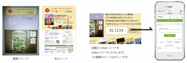 未来屋書店(全国約250店舗)で販売する紙の本や、無料配布のしおり、チラシに記載された「mibon コード」を入力すると、特別な作品や、雑誌バックナンバーをデジタル版で受け取ることが出来ます。