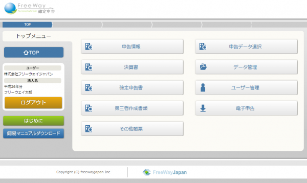 ■フリーウェイ確定申告のWEBサイト