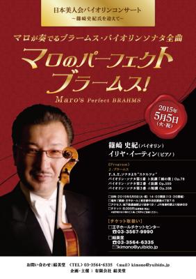 有限会社結美堂(本社:東京都中央区銀座/代表取締役:結月美妃)は、2015年5月5日(火・祝)銀座・王子ホールにて、NHK交響楽団コンサートマスター篠崎史紀によるブラームスのバイオリンソナタ全曲コンサートを開催。