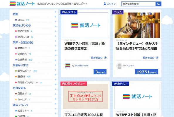 「エントリーシート必勝法」「○○会社の選考情報」「内定を獲得するコツ」などを寄稿し、