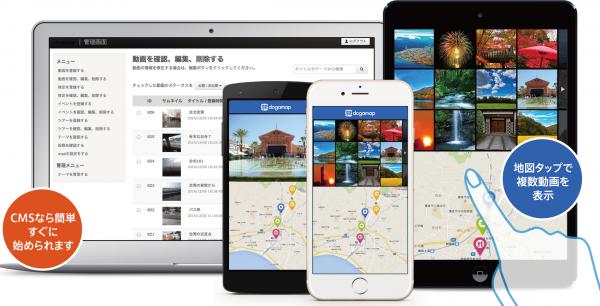 dogamapを活用することで、テキストや静止画で提供されてきた既存のコンテンツを、動画によるインパクトと共にわかりやすく伝えることができます。既存の動画素材があれば位置情報と連動させたガイドアプリの作成も可能、管理機能をご利用いただくことですぐに運用をはじめることができます。PC、スマートフォンやタブレットまで,様々なデバイスを使用したサービス・ソリューションを早期にご提供いたします。観光、施設案内をはじめ、住宅物件案内など様々な分野で新たな顧客獲得にご活用いただけます。