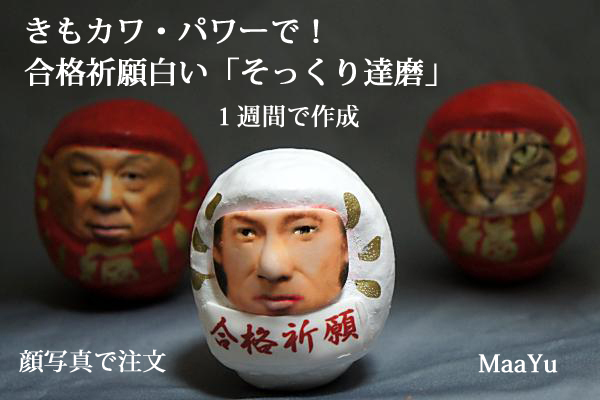 達磨の顔は横長ですが、顔写真は編集して、合わせる様に致します。