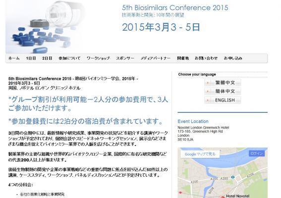 学会:「5th Biosimilars Conference 2015 - 第5回バイオシミラー学会 2015年」