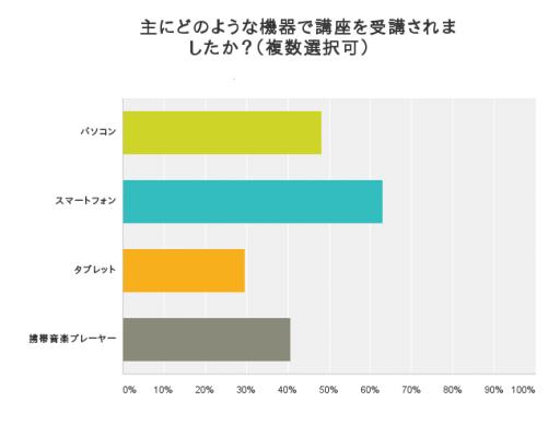 「どのような機器・方法で勉強していますか?」という質問では、1位「スマートフォン」(63.0%)、2位「パソコン」(48.2%)、4位「タブレット」(29.6%)という結果からも、マルチデバイス(スマートフォン・タブレット)を利用する学習スタイルが恒常化された感があります。