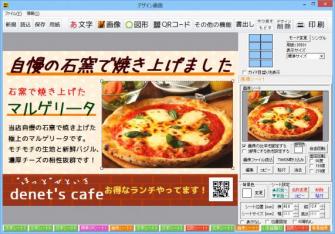 文字や図形の作成、画像の取込や配置、2種類のQRコード(QRコード / 携帯QRコード)の作成、