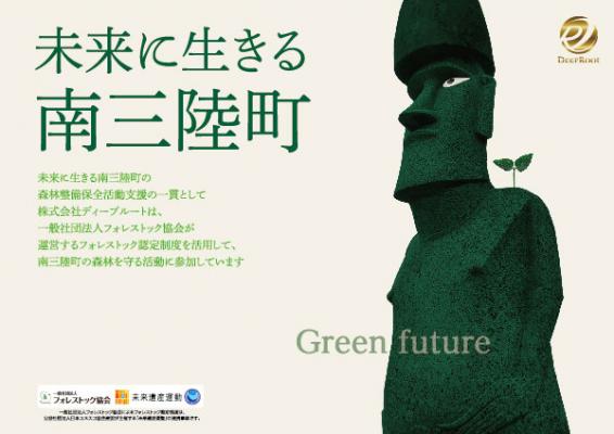 マーケティング・コミュニケーション開発を手がける株式会社ディープルート(東京都中央区銀座2丁目/代表取締役 西田理一郎 URL:http://www.deeproot.co.jp)は平成27年2月、自社のCSRコンセプトである「森を守る」の活動の一貫として、昨年に続きフォレストック認定制度を利用して日本の森林整備保全活動に参加すると発表しました。同制度を通じ、被災地東北の南三陸町の森の保全を支援いたします。