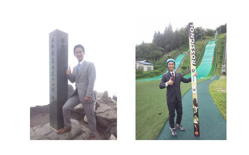 代表取締役社長 佐田展隆はこれまで自社のオーダースーツPRの為、自社製のオーダースーツを着用してスキージャンプ、富士登山等に挑戦しています。