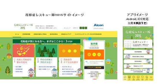 日本アルコン株式会社 (本社: 東京都港区、代表取締役社長: ジム・マーフィー) は、花粉症患者および潜在患者を対象に、花粉症に関する情報提供専用のウェブサイト「花粉症レスキュー隊2015 」http://kafun-rescue.jpを2015年2月20 日より正式に開設します。(2月16日よりプレオープンしています。)このサイトは、花粉の飛散量や時期に関する情報を提供することで、花粉症患者の方々が事前に対策を講じられるよう支援するものです。また、花粉症発生のメカニズムや症状を軽減するためのセルフケアなどについて解説し、花粉症患者の方々が今年の花粉シーズンを乗り切れるようサポートしていきます。