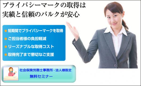 社会保険労務士事務所や税理士事務所向けの「マイナンバーあんしんパック」は、2016年1月から本格的に運用が開始されるマイナンバー制度に対応したプライバシーマーク取得支援サービスです。マイナンバー制度は所得や納税、年金など複数の行政機関に存在する個人の情報を一元管理し、国民一人ひとりに固有の番号を割り当て、社会保障や税に関わる各種行政手続きの効率化を図る制度であり、税と社会保障の一体改革として始められる制度になります。そこでバルクはこのマイナンバー制度で業務に特に大きな影響が予想され、マイナンバーの適切な取り扱いが求められる社会保険労務士事務所や税理士事務所向けにマイナンバー制度に対応したプライバシーマーク取得支援サービス「マイナンバーあんしんパック」のセミナー(無料)」を3月3日(火)に埼玉県の大宮ソニックシティビルで開催します。