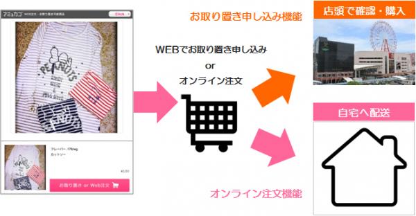 『アミュカゴ』は、アミュプラザ鹿児島公式WEBサイト内にあるテナントが発信する情報ショップブログに商品の(1)店頭お取り置きと(2)オンライン注文が可能な機能を追加。同機能につきましては、パルコ・シティが提供する商業施設向けWEBマネジメントシステム『SCコンシェルジュ(R)Web(ウェブ)』と約20万ショップが利用する日本有数のeコマースプラットフォーム『STORES.jp』(運営:株式会社ブラケット)との連携により独自に構築いたしました。