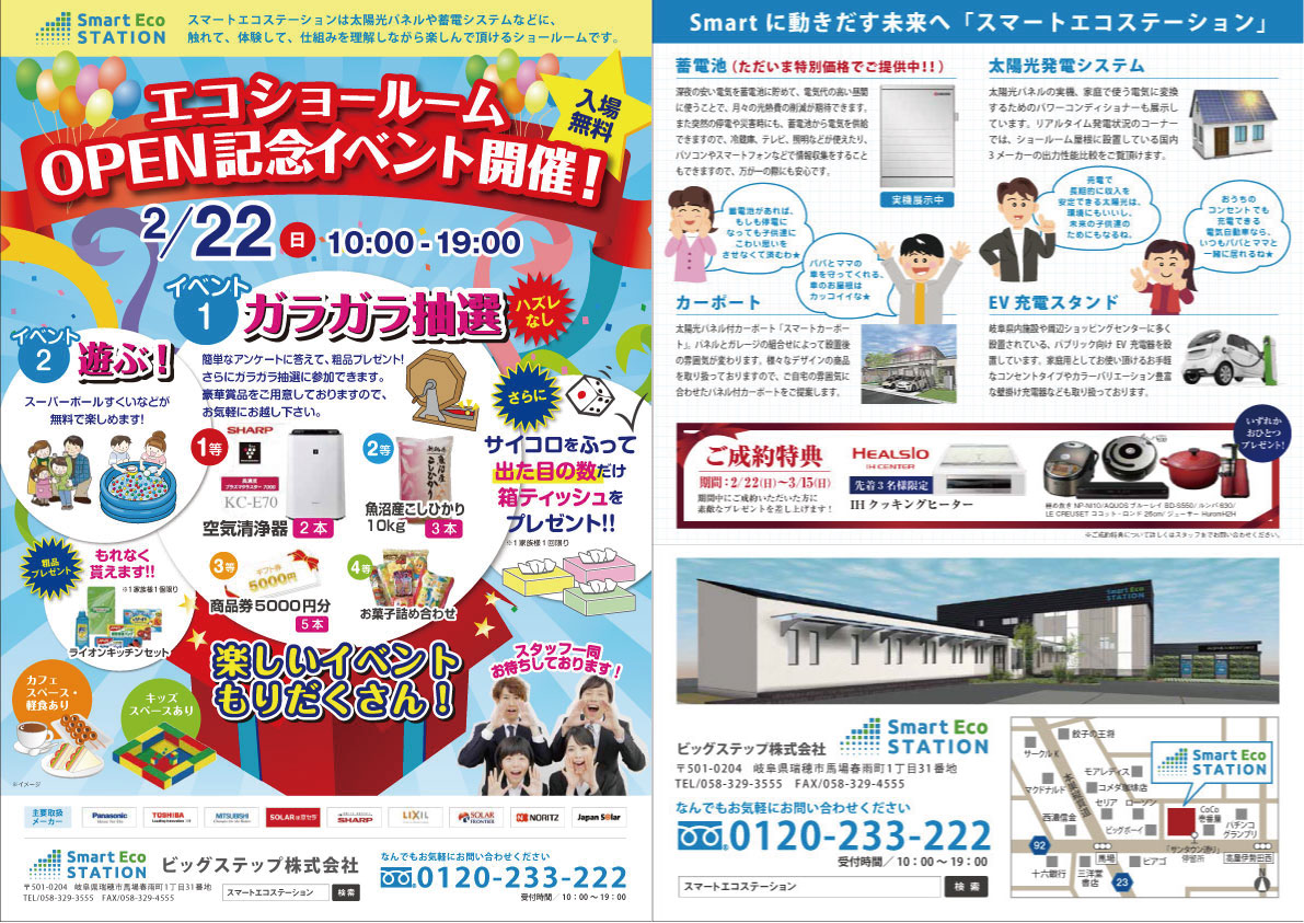 「スマートに、地球の未来のために」をモットーに、お子様からご老人の方まで安心してご覧頂ける、地域密着型の店づくりを目指しています。2月22日はグランドオープンとして、もれなくもらえるキッチンセット、サイコロ振ってBOXティッシュGET、豪華商品(1等~3等総額15万円相当)があたるハズレなしの抽選会などを開催!!