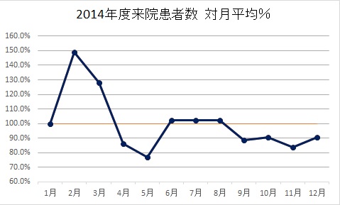 十仁美容整形の来院者数にもこれが顕著に表れ、2014年2月の来院数は同年月平均値比148.8%、3月は127.9%に推移しました。(調査結果の発表日:2015年2月18日)