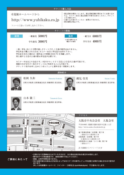 ※改正法案の提出内容および状況によって時間割・セミナーの内容・レジュメの記載方法等が大幅にかわる可能性があります。詳しくは有斐閣ホームページ,ツイッター(京都支店@yuhikakukyoto)でご案内いたします。
