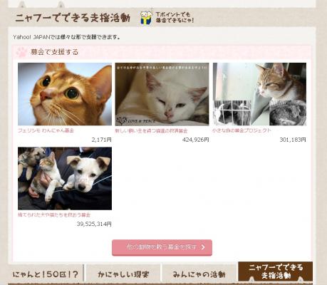■「Yahoo!ネット募金」の「猫への恩返し」特集ページ