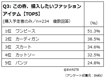 ■この春、購入したいファッションアイテム TOPは「ワンピース」