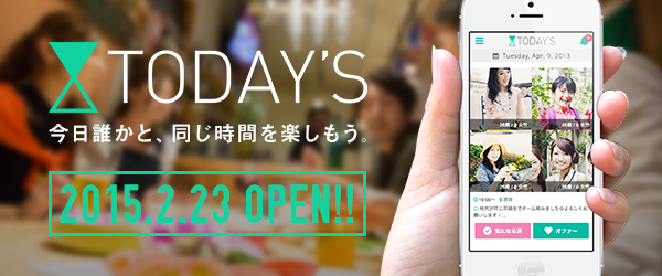 「今日誰かと、同じ時間を楽しもう。」今日を誰かと楽しく共有するためのソーシャルマッチングサービス「TODAY’S」β版WEBサービス(http://meet-todays.com/)2015年2月23日(月)公開