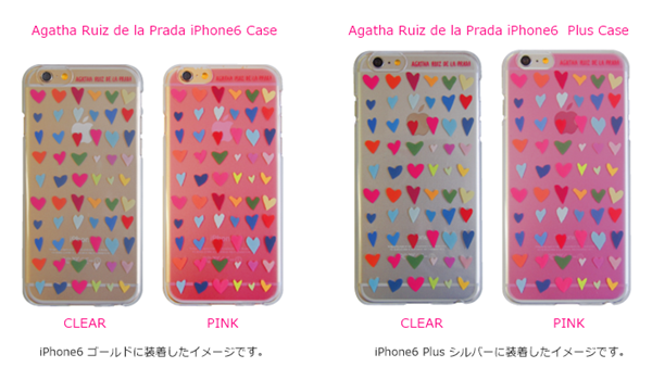本製品は、透明のiPhoneケースに、Agata Ruiz de la Pradaらしい色とりどりの"ハートのシャワー"を降らせたデザインで、ベースはクリアとピンクの2種類、サイズはiPhone6(4.7インチ)用とiPhone6 Plus(5.5インチ)用の2サイズ。計4種類。