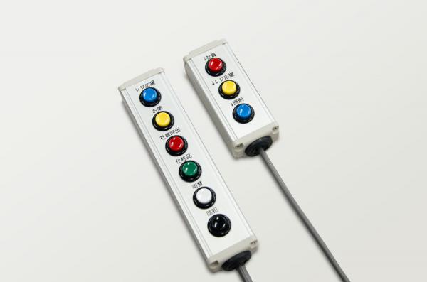 他社製品が4種類の音源しか搭載できないことに対し、本製品では9種類の音源を搭載することができます。一般的によく用いられる「レジ応援」や「店長呼び出し」などだけでなく、例えば「両替の依頼」、「売り場応援」、「不審者の侵入」、「特定技能を持つスタッフの呼び出し」などさまざまな呼び出しを店舗の要望にあわせてカスタマイズすることが可能です。売り場に設置したボタンをお客さまに押してもらい、チャイム音や音声アナウンスを流すことで従業員が駆け付ける仕組みも容易に構築できます。