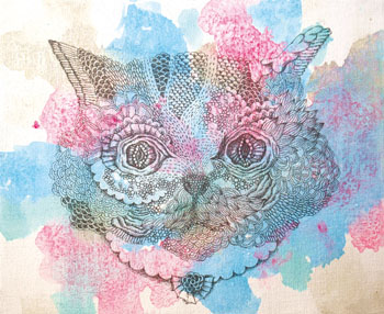 工芸的な密度と風合いをたたえ、平面を3Dにも4Dにも感じさせる作風は、創作活動スタート当初から高い評価を受けてきました。他に写真を使ったコラージュ、本としての作品や立体作品なども発表。着想豊かで多様かつ大きなスケールの表現力は各コンペでも賞賛を受け、今後の活躍が期待されている新鋭です。
