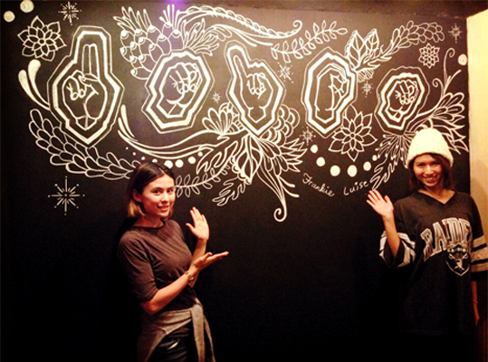 株式会社socia'L CORE(本社:東京都渋谷区神宮前1-8-5 メナー神宮前5F、代表取締役:中島庸彰)によって運営されるソーシャルファンディングによって集めた資金で2月14日にグランドオープンした飲食店「Share Bar UNION」のオープンイベントで壁一面のチョークライブアート「Ono Luise・Frankei CihiによるLive Drawing」が行われた。 【"Life is sharing"~情報をシェアする。繋がりをシェアする。人生をシェアする。~】がコンセプトのUNIONにとって、それが形となってできたのが壁一面のチョークアート。 描いた2人のアーティストは、植物をモチーフとした有機的な線とビビットな色使いが特徴のOno Luiseと、同じく画家で、ニューヨークのアート学校を卒業後、生まれ育った地・東京を拠点に活動し、人気テレビ番組の「テラスハウス」に出演していた画家Frankie Cihi。繋がりをシェアし、そこから広がる繋がりで、店の壁には新しい命が吹き込まれました。 今後も繋がりによって変わり続ける「Share Bar UNION」に是非ご注目下さい。