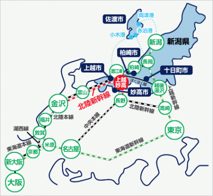上越、妙高、柏崎、十日町、佐渡の「越五(えちご)の国」がぐっと近くに。
