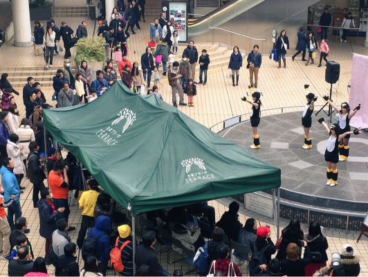 会場では、ペンギンの衣装で全力でステージを披露するメンバーに、買い物中の女子高校生や子供連れの親子など、多くの方に足を止めていただきました。