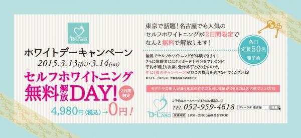 2015年1月15日(木)に名古屋栄久屋大通沿いの路面店にオープンし、この度来客数が500人を超えたことを記念に2015年3月13日(金)14日(土)の2日間、無料でセルフホワイトニングを体験できるようにします。