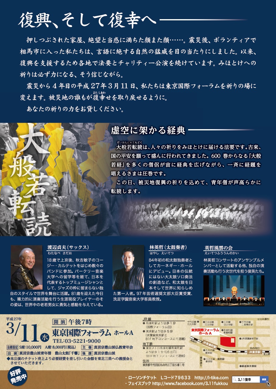 東日本大震災から4年目を迎える2015年3月11日19時より、真言宗豊山派仏教青年会は東京国際
