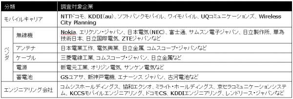 本調査企画は、基地局及び周辺部材市場の現状やキャリアのインフラ戦略について、キャリアやベンダ、エンジニアリング会社などへの多面的な取材を通じ、実態を把握し、予測することを目的としている。具体的には、キャリアのインフラ戦略及び投資動向に加え、無線機やアンテナ&ケーブル、蓄電池など周辺部材市場の実態を明らかにする。また、2018年度までの基地局や周辺部材市場を予測については、700M/900MHz帯やLTE-Advanced/5Gなどの技術動向を踏まえながら、今後のキャリアのインフラ戦略を多角的に分析することで、精査していくものである。