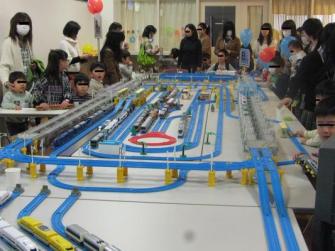 学校法人谷岡学園 大阪女子短期大学高等学校(大阪府藤井寺市)のサブカルチャー研究部では,活動の柱のひとつである地域の子どもたちとの交流を目的として,プラレールの運転会を3月24日(火)に開催します(写真は過去の開催での様子)。