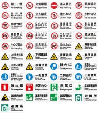 禁止・・・禁煙/火気厳禁/進入禁止/駐車禁止/自転車乗り入れ禁止/立入禁止/