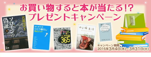 ◇キャンペーン名称:お買い物すると本が当たる!?プレゼントキャンペーン