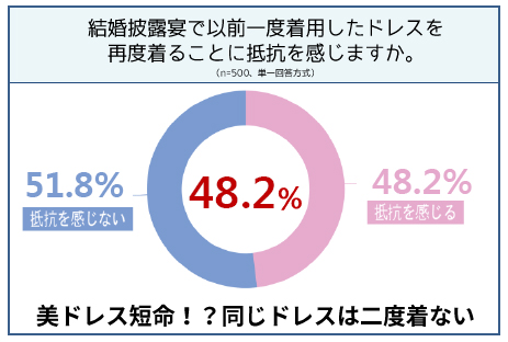 ●披露宴で一度着たドレスを再度着ることに抵抗がある 48.2%