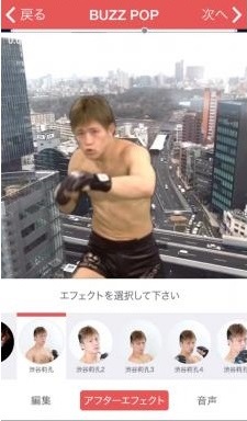 「アフターエフェクト」とは、作成した動画にビジュアルエフェクトを合成する機能で、地下格闘技出身ファイター!「リアル刃牙」渋谷選手の熱い「アフターエフェクト」で動画編集できるコミュニケーションアプリはガンパティーの『BUZZ POP』だけです。
