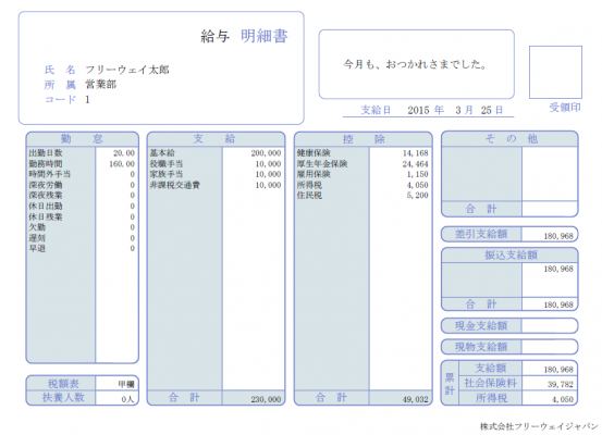 給与明細などは、すべて白紙のプリンタ用紙に印刷できます。