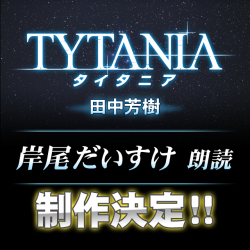 株式会社アールアールジェイ(所在地:東京都新宿区、代表取締役:橋満 克文)は、有限会社らいとすたっふ(所在地:東京都中野区、代表取締役:安達 裕章)の許諾を受け、『タイタニア完結記念!田中芳樹ロングインタビューinハピラジ!』にて、『タイタニア』全5巻を朗読化する事を発表致しました。