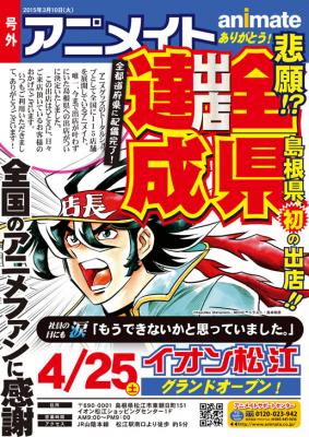 株式会社アニメイトは「アニメイト イオン松江」(島根県)を、2015年4月25日(土)にグランドオープンいたします。