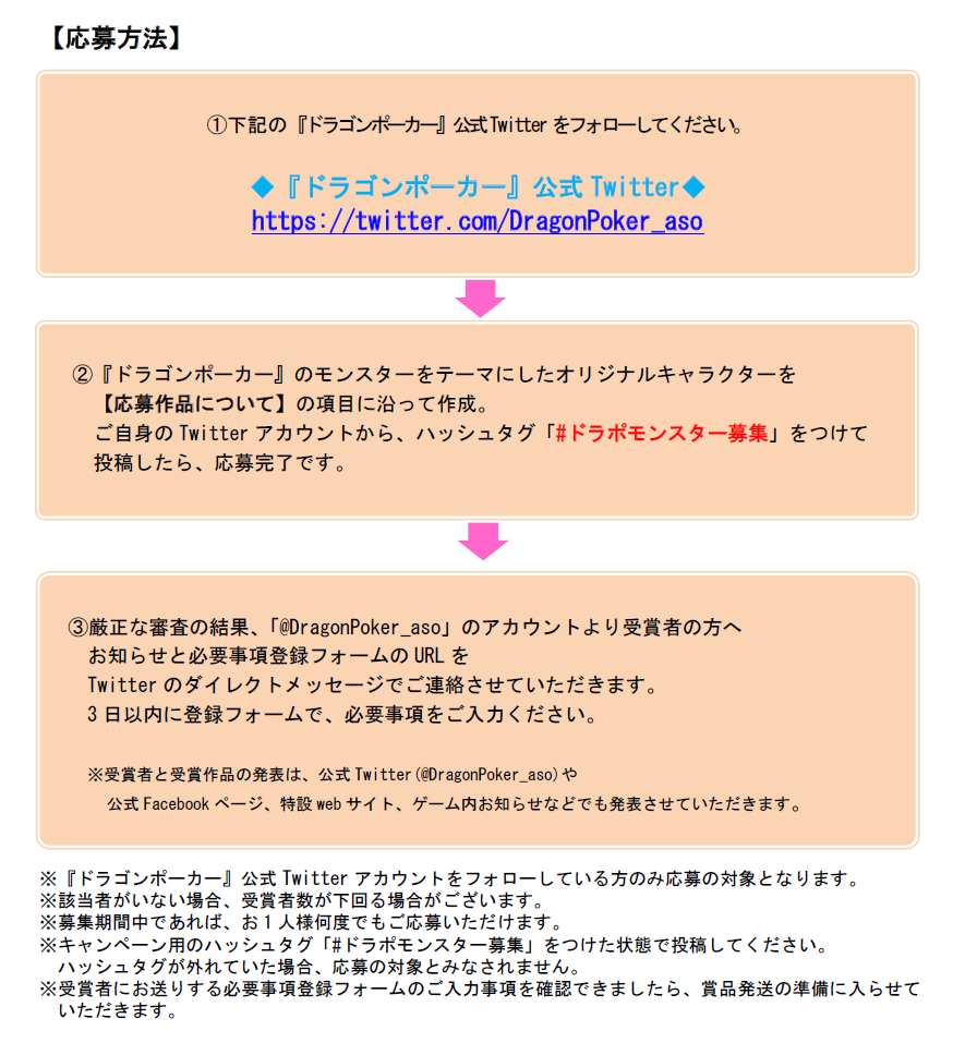公式Twitter(@DragonPoker_aso)や公式Facebookページ、ゲーム内のお知らせ、特設Webサイトで